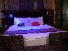 床的正面,兩個小抱枕(壽司及嘴唇)後方有LED閱讀燈