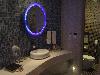 房間裝潢、格局來說大至上滿意浪漫的咧~我們家那隻豬對圓床、按摩浴缸讚不決口;不過有個美中不足的地方是…如下圖三發現洗手台上的鏡子大約有兩顆燈泡不亮,破壞美感@@"之前曾住過水晶迷情那間,按摩浴缸旁的止滑磚效果差害我滑一跤,這間房間讓我放一百個心了,止滑效果好,而且浴缸的水也不易溢出…如下圖四。