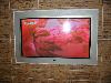 櫃檯旁的大電視,播放我們館內房間照片,
