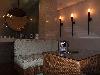 再來就是第三部份浴室,有一個和室桌與坐墊,浴缸很大且滿深的(一小包沐浴精沒有泡泡),四周有排水溝且有留踩腳布和止滑貼,浴缸入水或是出水都很快,在正上方有棚布,我到隔天起床才發現牆壁有一個電動開關可以打開上方棚布@@,靠牆邊就是整排造景與鋪石,浴室靠造景的一面整大片玻璃可以看到造景,蓮蓬頭和花灑出水都很大,地上排水非常良好,旁邊則是廁所和大到可以五六個人在裡面都不會擠的烤箱,外牆就是有兩個洗手台,備品超齊全的