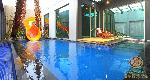 電視整個房間就有三台.大SIZE的床也是目前最好睡的!室內的游泳池我門家的一大早就在那邊來回晨泳.洗臉台有兩個.浴缸也有兩個.ㄧ個是室內有花灑的大理石浴缸.另ㄧ個是半露天大概可以做六七個人的大按摩浴缸.客廳的電視有附兩支麥克風.呵呵~歌都很新喔!