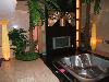 延著左邊的樓梯盤旋而上, 到了二樓, 首先是飲料點心區, 點心有10包左右, 相當多, 不過沒泡麵; 點心區的後方則是KTV區, 翻了一翻歌本, 歌蠻舊的, 不過只有三小時想我們也沒什麼時間唱, 繼續往前看 (對了, KTV區旁擺了一張辦公桌, 桌旁有網路孔. 不過也是沒時間上網, 雖然有帶NOTEBOOK, CHECK IN 時也借了網路線. 玩都來不及囉 !) 是按摩浴缸及冷水池區, 這一區很漂亮, 而且浴缸前的電視是37吋的 (ktv區和三樓的臥室各有一台42吋的, 都是大同的), 二樓採挑高設計, 所以二,三樓整個看起來是樓中樓. 照例先把浴缸洗一洗, 不料洗出一根毛髮, 猜測大概是打掃人員不慎留下.