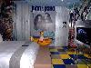 推開房門一進入, 真的如我在官網上看到的, 很漂亮哩 (但驚喜還在後面的浴室區, 因為官網上沒有浴室區的照片). 左前方是床, 床上的壁面上有很多塗鴉(象徵搖滾音樂的解放風格), 一進門有一可愛的飛機 (象徵披頭四由英國橫渡大西洋至美國大放異彩), 右邊的牆壁上則有約翰藍儂和他的妻子小野洋子的大型輸出圖片; 往左邊看是往浴室的方向 (有兩扇推門可以關起來區隔臥室,浴室區), 在進入浴室區前的角落則擺了一尊自由女神像 (象徵搖滾樂在美國的發展), 臥室電視上則放了三把真的電吉他哦 ! < 第一驚喜 >