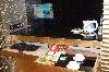 床與珠廉的中間是點心櫃 點心櫃的牆面隱藏了一個電腦螢幕