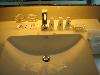 再往裡走便是浴室 , 進入浴室後 , 石材按摩浴缸很大 ,它的底部有10個按摩汽孔 , 振動的氣體從底部噴出 , 按摩的效果很好.很舒服~