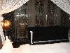 進房左方是用透明布簾隔間的臥室區 , 公主床是king size超舒服的床 , 床的兩邊是各放2張沙發椅及4個抱枕 , 坐臥起來很舒服喔~~ , 臥室區整個感覺是超浪漫的.