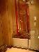 浴室是兩片亮紅色的大門片~~浴室地板牆面是米色石材為主