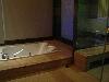 和上次821房擺設形式一樣的房間, 不過裡面沒有其他附加設備, 一樣有DVD播放器、蒸汽浴、按摩浴缸等, 點心吧上有附雜誌, 也有泡麵、其他足夠的點心, 倒不用怕會餓肚子, 早上可選擇送餐服務, 7:00~9:00時段可以送餐, 建議點他們的中式早餐會比西式豐富。 房間的設計希望可以加強, 我們看到床對面有個用竹子搭起來的圓形拱球圖案, 中間掛了個奇怪的懸掛球, 用霓虹燈照射, ㄜ....不太有浪漫氣氛, 倒增加了幾股詭異的調調。 整體環境還不錯, 價格平易近人, 加點錢就可以住到設備不錯的房間。