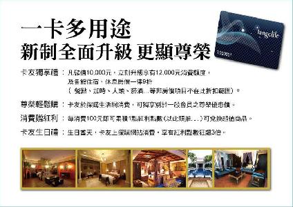 為了服務廣大的客戶們,現在正熱烈推出『探購卡』,此卡結合了本公司的旅店(永和館、土城館、南港館、延平館)及商城,只要貴賓您擁有此卡,到本公司旗下任一旅館消費都可享有折扣優惠,除此之外,這張探購卡還有儲值的功能,讓貴賓只需帶著一張卡到本公司的任一館即可輕輕鬆鬆從卡內扣款消費,當然擁有此卡除了選擇可在本公司的旅館消費也可以在本公司推出的『探購生活網』上消費,可獨享別於一般會員之尊榮優惠價還可以累積紅利點數兌換超值商品,擁有『探購卡』真的十分超值,以下會詳細的一一列出擁有『探購卡』的好康,歡迎有興趣的貴賓們可以與本館聯絡。
