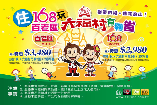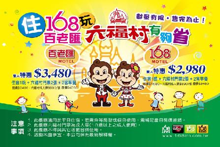 平日住宿1晚+六福村成人票2張 優惠價3,480元