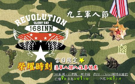 168集團 將於 9/3 (四) 軍人節 推出軍人專屬優惠
