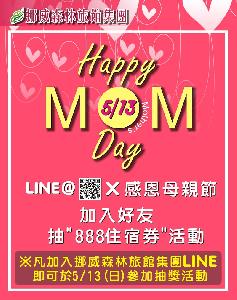 5/13(日)20:00前加入「挪威森林旅館集團」LINE@好友,