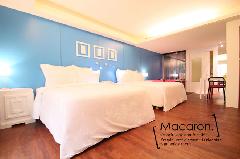 ■平日優惠價: 1880元/2人、 2480元/4人 ■假日價: 2680元/2人、 2680元/4人 ■人頭清潔費:500元/人(含備品及早餐) 加時費:150/ 0.5H ■ .兩張5.2*6雙人蓆夢思名床 .RO逆滲透 .42"液晶電視 .書報雜誌 .MINI BAR .